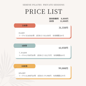 2025・10~価格表 | セリーン ピラティス パーソナルトレーニングスタジオ